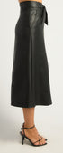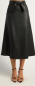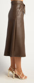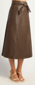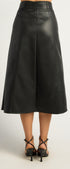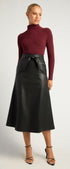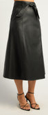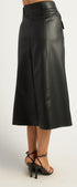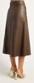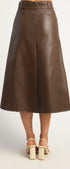 A Line Faux Leather Midi Skirt with Top Stitch Belt Detail