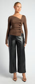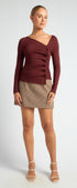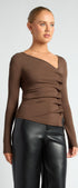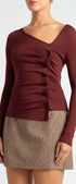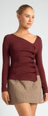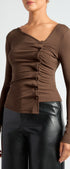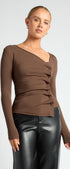 Asymmetric Neckline Jersey Top with Button Ruffle Feature