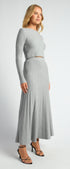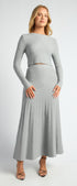 Boat Neckline Top & Pleated A-Line Maxi Skirt Knit Set