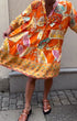 Bohemian Print Dress with Relaxed Fit & Long Sleeves