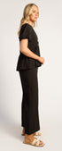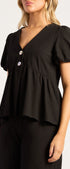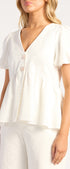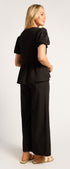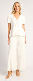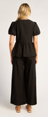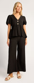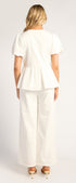 Bubble Sleeve Top And Pants Set With Oversized Button