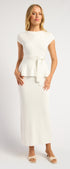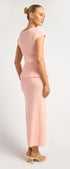 Cap Sleeve Knit Top and Midi Skirt Set with Waist Tie