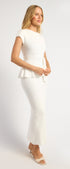 ● Two-Piece Knit Set: Includes a fitted cap sleeve top and coordinating midi skirt for a cohesive look