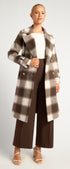 Checkered Double Breasted Faux Wool Coat