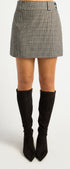 Checkered Mini Skirt with Wide Belt Loops and Button