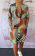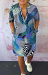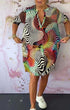Colourful Printed Dress with V-Neckline Half Sleeves & Pockets