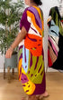Colourful Relaxed Fit Dress with Leaf Print & Short Sleeves