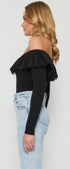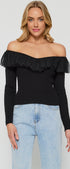 ● Feminine with a Twist: Frill and mesh detailing elevate a basic knit