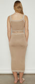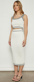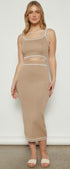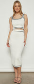 2-Piece Coordinated Set: Includes a fitted knit top and matching midi skirt for an effortlessly put-together look