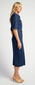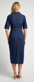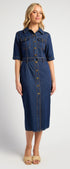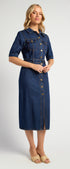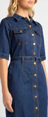 ● Structured Denim Fabrication: Durable yet comfortable denim gives the dress a flattering, everyday fit