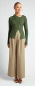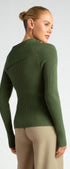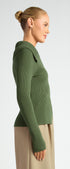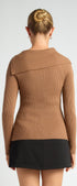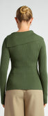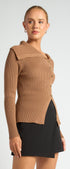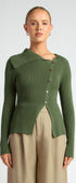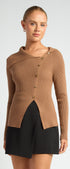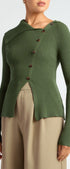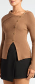 ● Effortlessly Polished: Draped neckline and button details elevate a simple knit