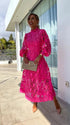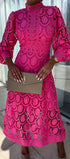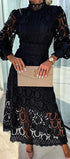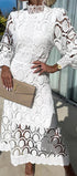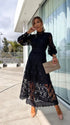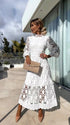 Elegant Romantic Lace Midi Dress with Sheer Sleeves