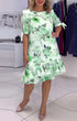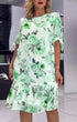 Elegant Round Neck Floral Print Midi Dress with Short Sleeves