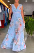Elegant Sleeveless V-Neck Floral Print Midi Dress