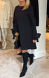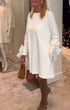 Fashion Round Neck Dress with Bow Sleeve Detail & Relaxed Fit