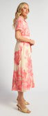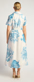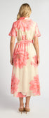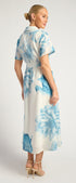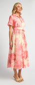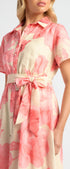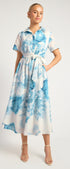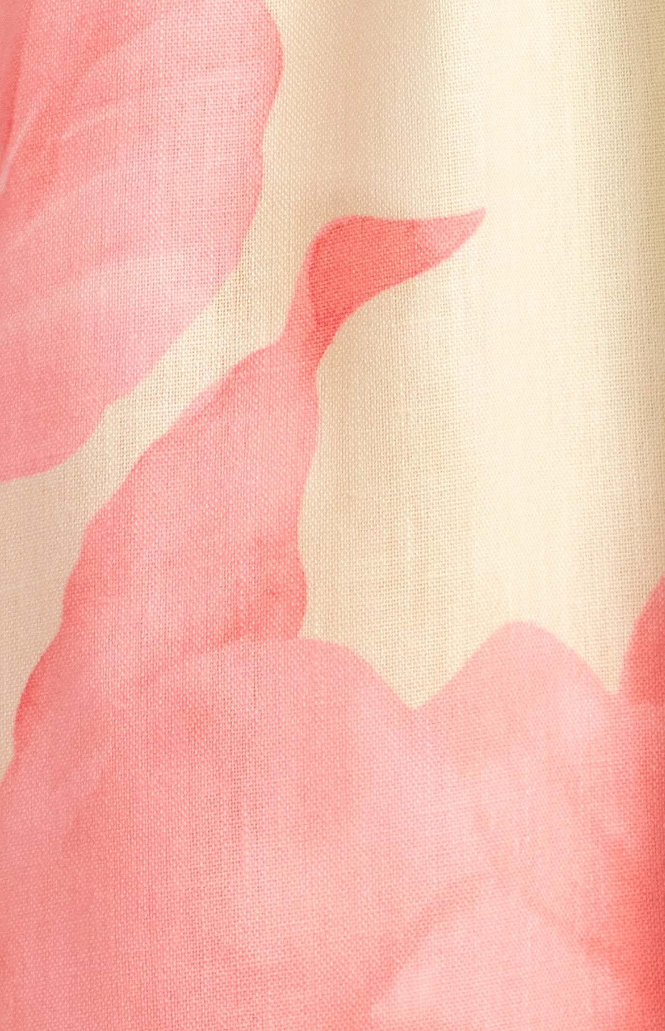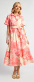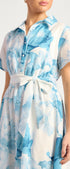 Faux Linen Floral Print Midi Shirt Dress with Waist Tie