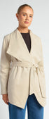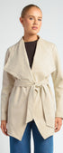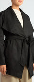 Faux Suede Waterfall Jacket with Waist Tie and Pockets