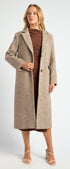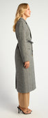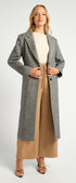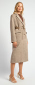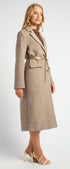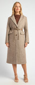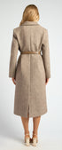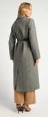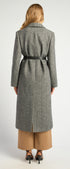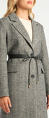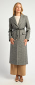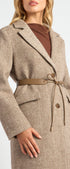 Faux Wool Herringbone Single Breasted Coat with Belt Accessory
