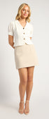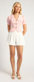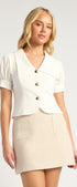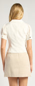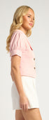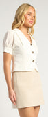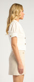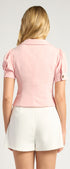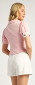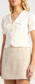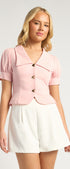Gold Button Collared Knit Top with Ribbed Texture and Short Sleeves