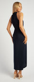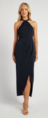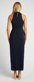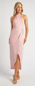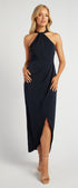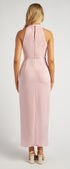 Halter Neckline Satin Midi Dress with Tulip Hem