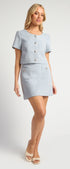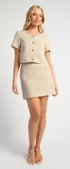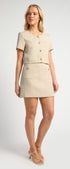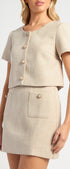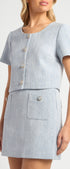 Lightweight Tweed Fabric Top and Skirt Set with Gold Accent Buttons