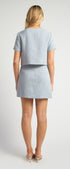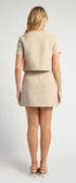 ● Two-Piece Tweed Set: Includes a cropped top and matching mini skirt in lightweight tweed