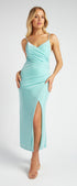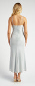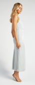 Metallic Mesh Maxi Dress with Side Pleat