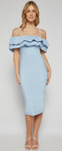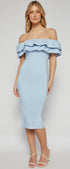 Off Shoulder Layered Ruffle Neckline Bodycon Dress
