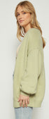 Ribbed Hem and Cuffs: Structured finish that balances the slouchy shape