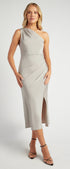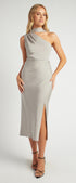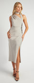 Holiday Parties: The satin shine and scarf detail bring festive charm to any celebration
