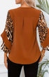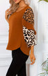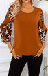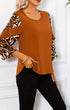 Round Neck Top with Leopard Print Contrast Detail