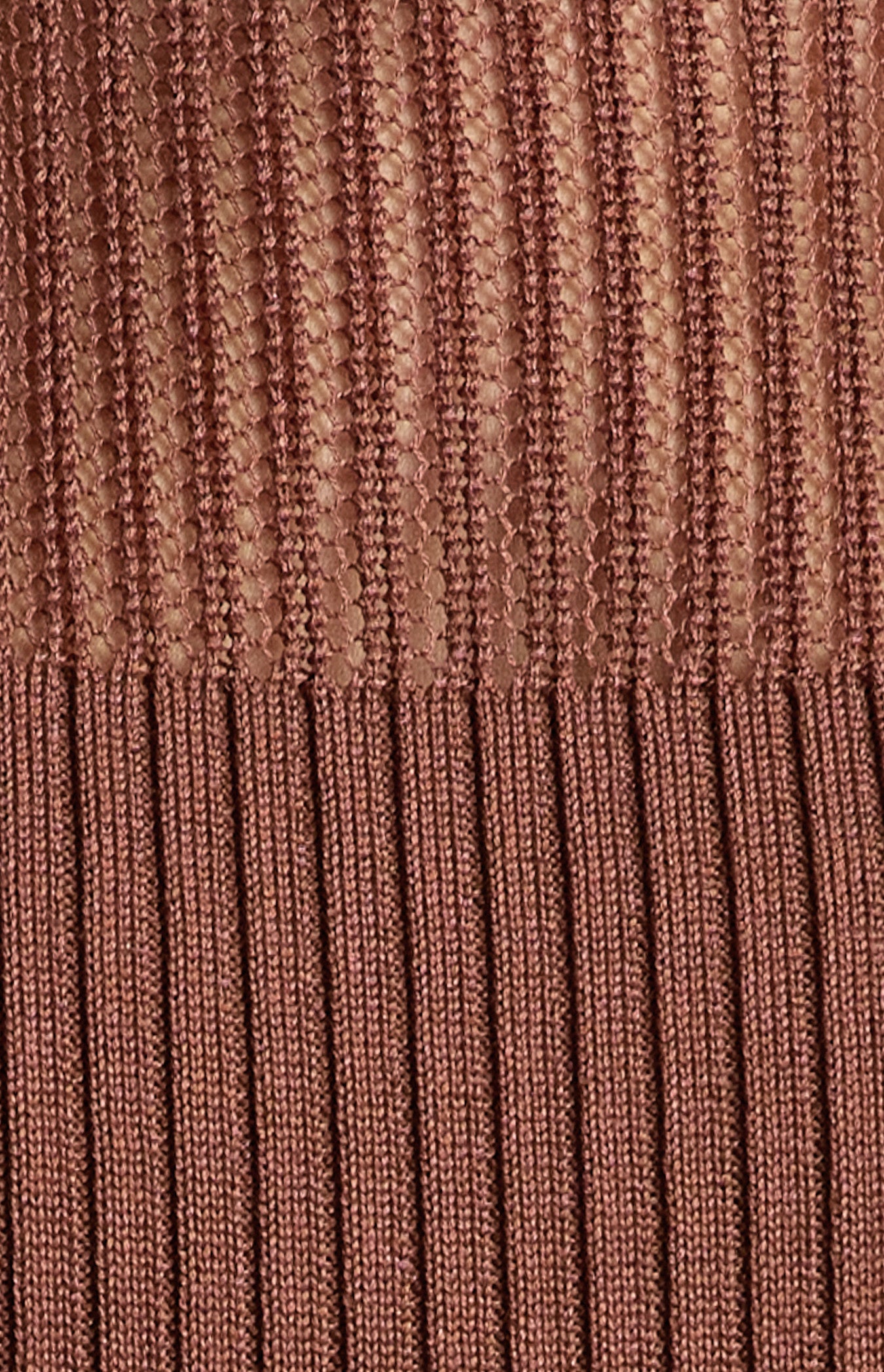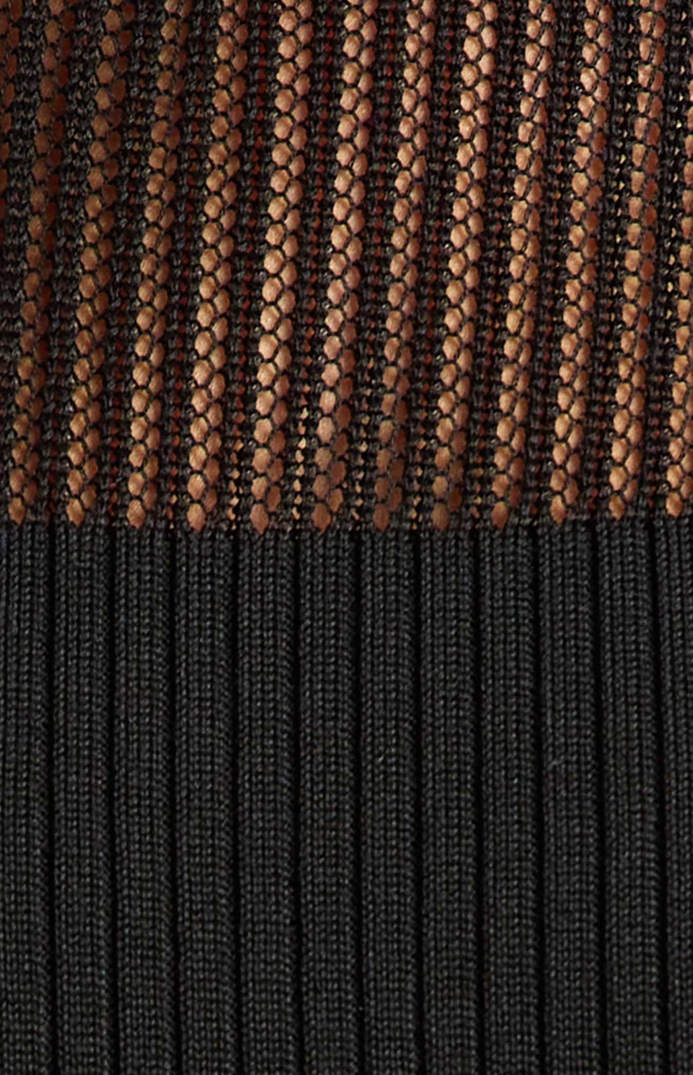 ● Sheer Stripe Textured Knit: A visually striking pattern with alternating opaque and sheer panels for modern appeal