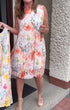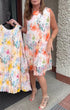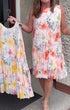 Sleeveless Pleated Floral Print Midi Dress with Defined Waist