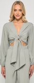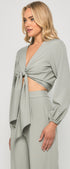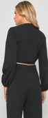 Effortless Statement Piece: Bubble sleeves and front ties transform a simple top into a fashion-forward essential.