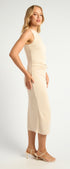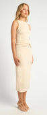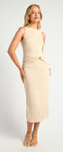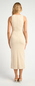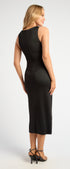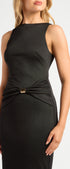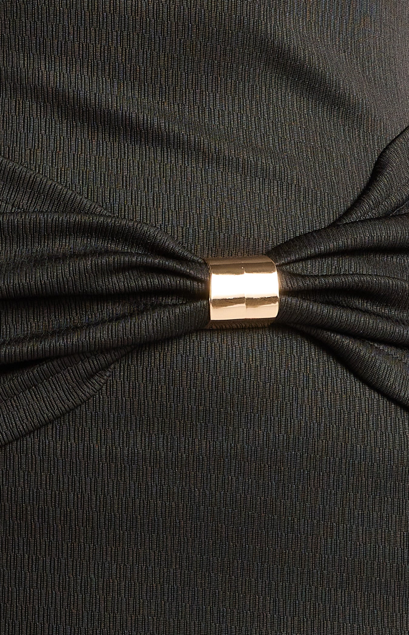 Textured Jersey Dress with Waist Gathering and Gold Ring Feature
