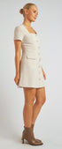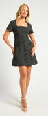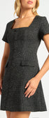 Tweed Mini Dress with Front Buttons and Faux Pocket