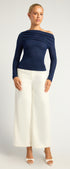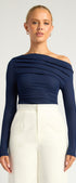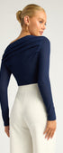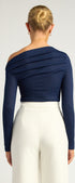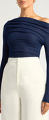 Two Way Wear Pleated Neckline Textured Stretch Jersey Top