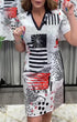 V-Neck Commuter Style Dress with Short Sleeves & Relaxed Fit