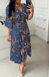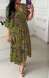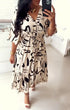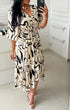 V-Neck Waist Dress with Ink Print & Short Sleeves
