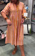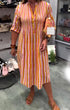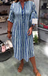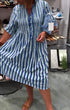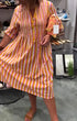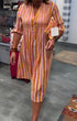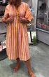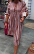 Wave Pattern Knit Dress with Long Sleeves and Side Split